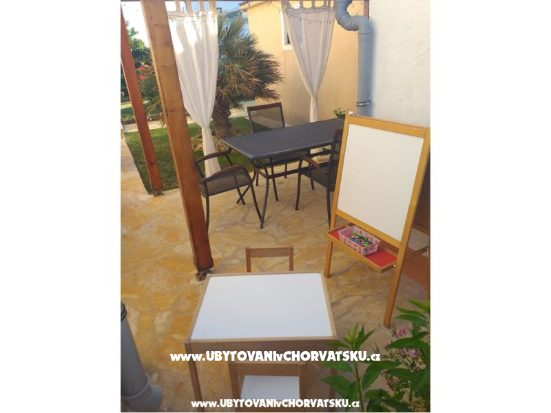 "Lukin 2+2" - A2 + 2 with terrace Bedroom with a double bed for 2 persons, bathroom with shower, kitchen (kettle, toaster, microwave, oven, large refrigerator with freezer), living room with a sofa bed for 2 persons, balcony, TV, air conditioning, Wi-Fi, and covered p